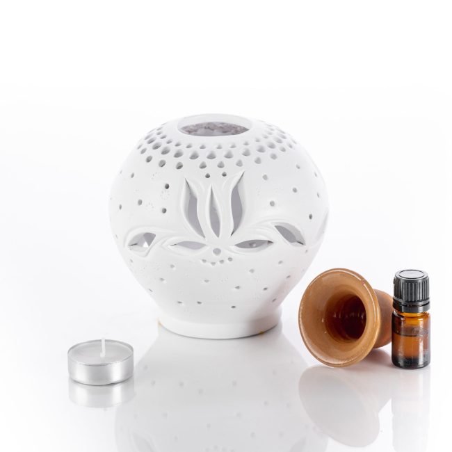 Pentru amatorii creării de atmosferă cu lumânări. Aromatizor ceramic alb, fabricat din lut. Suporturile noastre de lumânări funcționează cu iluminare pe bază de lumânare, la care se adaugă și un recipient mic pentru ulei, în care se poate folosi uleiul esențial preferat.